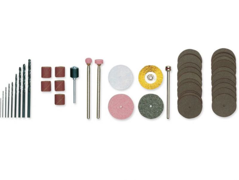 The maximum speed of 22,000rpm is continuously variable down to 5,000rpm. The full wave electronic speed control results in virtually constant torque, even at lower speeds, in turn facilitating micro drilling, cleaning and polishing. The spindle runs in a precision ball bearing and is lifted with a lock button. The 20mm collar fits MICROMOT drill stands and vices. The machine is fitted with a special, balanced, low noise DC motor with high life expectancy. Stable housing of glass-fibre reinforced POLYAMIDE with soft components in the finger grip area. Complete with 43 quality inserts in a sturdy plastic case.