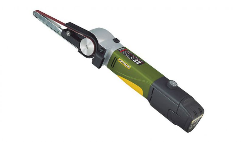 With variable electronic speed control. The head rotates through 60° at the touch of a button. Suction connection with vacuum cleaner adapter enables clean working. Complete with 4 sanding belts (2 pieces each grit 80 and grit 180). Safely stored in an attractive and extremely stable plastic case. Set includes BS/A, lithium-ion battery Li/A2 (10.8V) and rapid battery charger LG/A2.