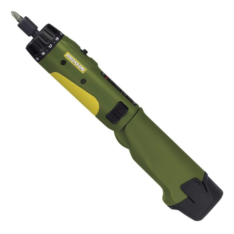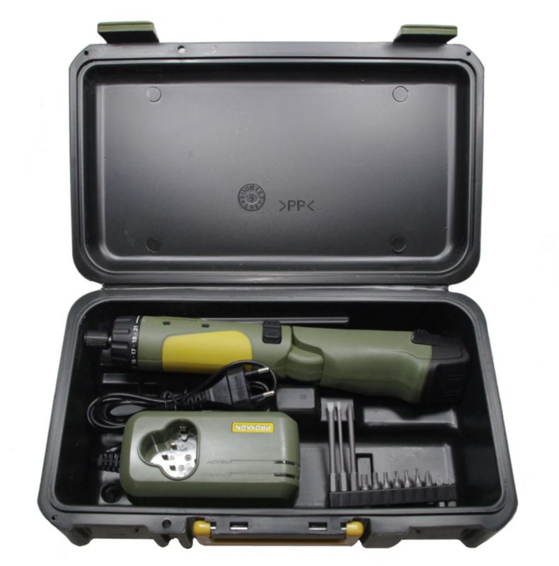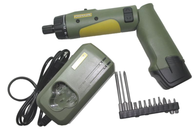 Automatic spindle lock when the set torque is reached. Practical: if needed, screws can be finally tightened at higher torque by hand. Receptacle for 1/4"-hexagon-standard bits. Bits are securely held and released by moving the locking ring. Bright LED illuminates dark working areas. Including 12 standard bits of industrial quality. Thereof nine bits of 25mm (PH 0 - 1 - 2, HX 3 - 4 - 5, TX 10 - 15 - 20) as well as 3 bits in extra-long version of 80mm (PH 1 - FD 3 - 5,5), lithium-ion battery Li/A2 and rapid charger LG/A2.