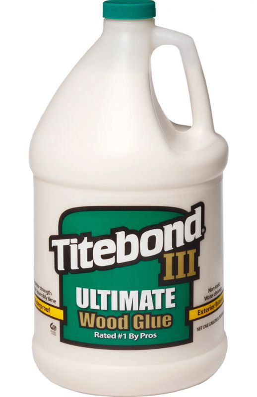 Titebond III Ultimate Wood Glue is the first one-part, water cleanup wood glue ever offered that is proven waterproof. The waterproof formula passes the ANSI/HPVA Type I water-resistance specification and offers superior bond strength, longer open assembly time and lower application temperature. Titebond III is non-toxic, solvent free and cleans up with water - safer to use than traditional waterproof wood glues. It provides strong initial tack, sands easily without softening and is FDA approved for indirect food contact (cutting boards). The ultimate in wood glues - ideal for both interior and exterior applications.