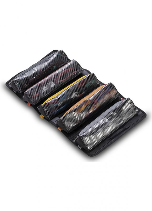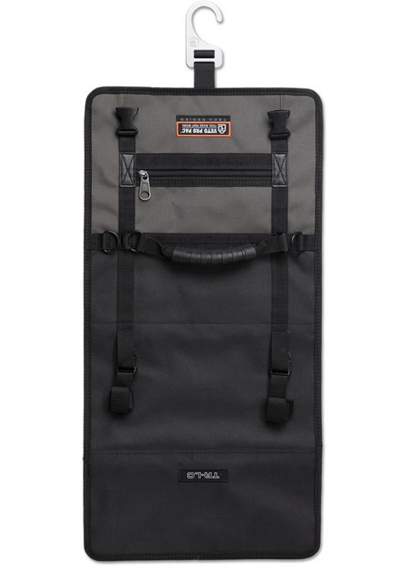 The TR-LC is a highly functional, large modular tool roll designed for job sites and roadside repairs. It features a mountable design with a hanging hook to keep it off the ground and out of the mud. This large tool roll is easily carried with an ergonomic grip handle and a shoulder strap when rolled up, and two secondary handles for quick transport when unrolled. The TR-LC includes five removable storage pouches and rolls: three multi-colored large bulk storage pouches (“RP-LCs“) designed to contain items while hanging; a wrench roll (“WR-LC“) for a full wrench set, and a socket roll (“SR-LC“) for a full socket set. Both the WR-LC and SR-LC also function as standalone rolls with external zippered pockets and carrying handles. The RP-LCs, WR-LC, and SR-LC utilize heavy duty Velcro to ensure a secure attachment and easy detachment on the inside of the TR-LC so that you can grab them and go as you need. Additional WR-LCs, SR-LCs, and an ADDITIONAL 2-Pac of RP-LCs (shown below as RP-LC (2 PAC) and offering different colors (dark gray and light gray) than the RP-LCs that come with the TR-LC) can be purchased separately to customize the layout.