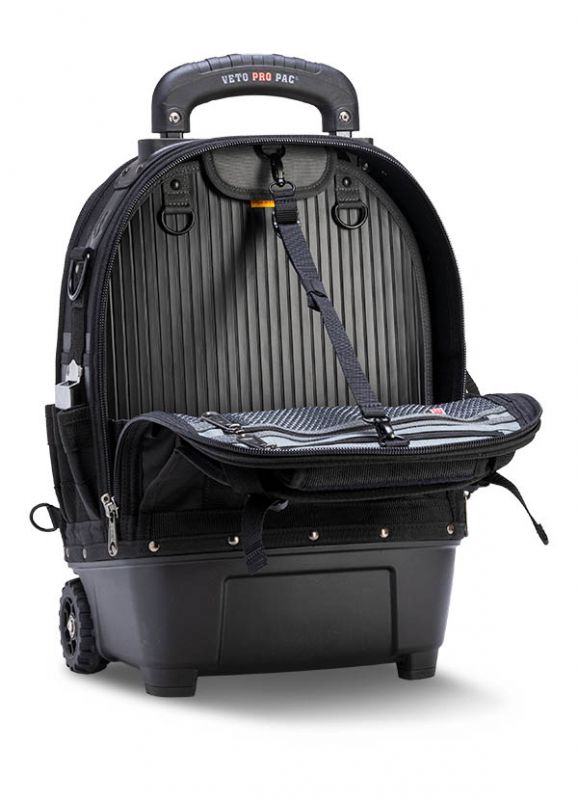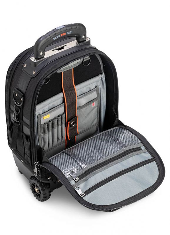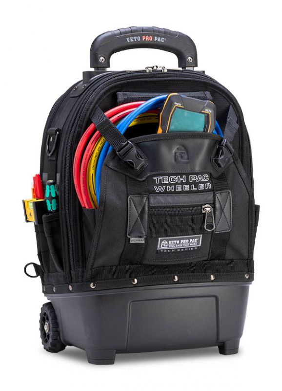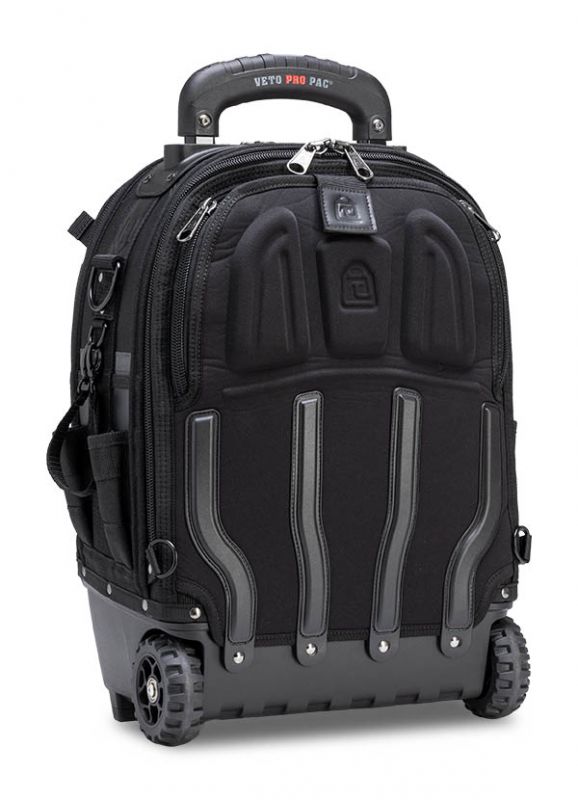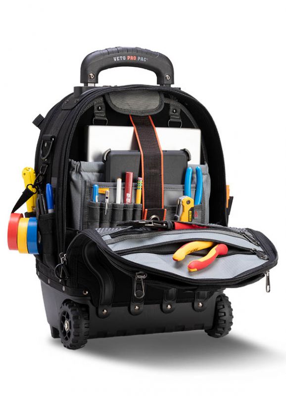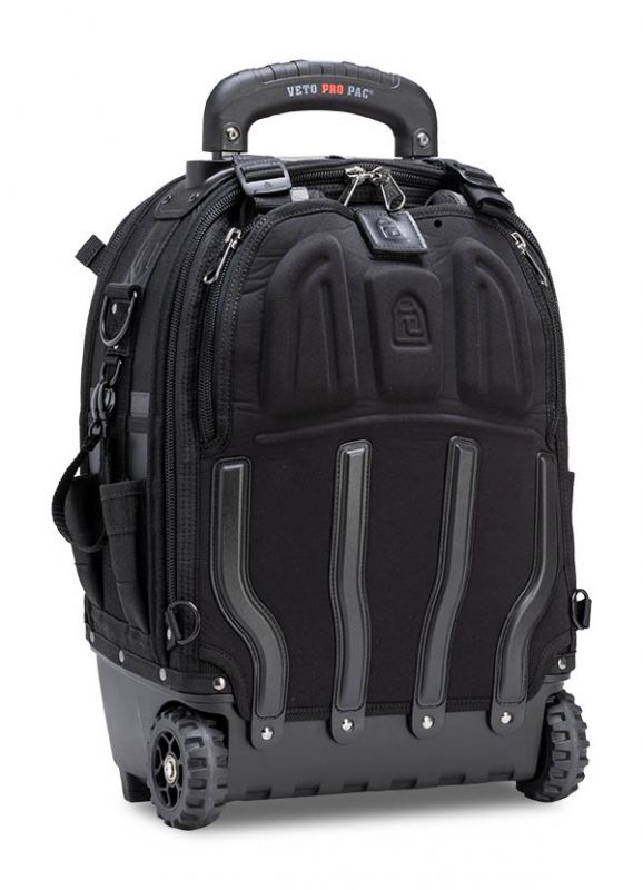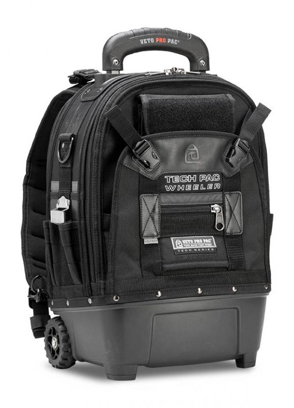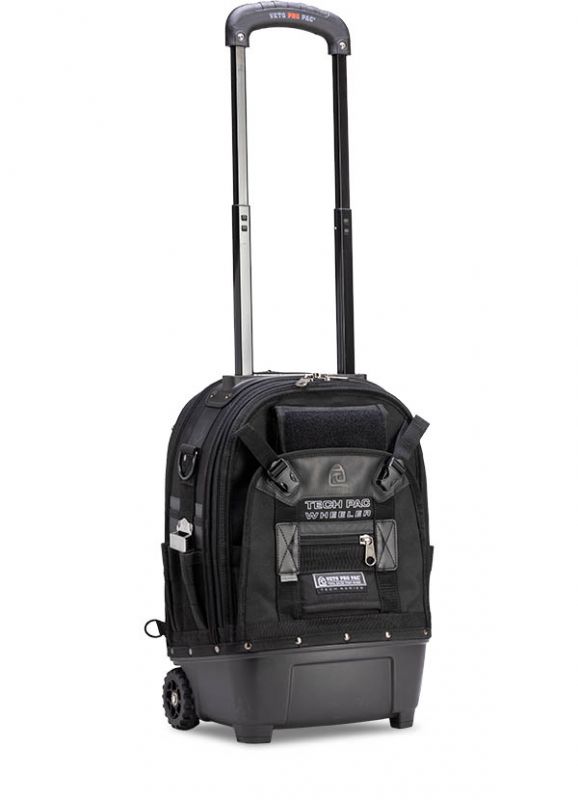 The TECH PAC WHEELER BLACKOUT is a rolling version of the best-selling TECH PAC BLACKOUT backpack tool bag with an all-black colorscheme. This wheeled backpack includes new premium padded backpack straps that are completely removable. This makes stowing the backpack straps easier and allows you to choose whether the bag can function as a backpack or not. The TECH PAC WHEELER BLACKOUT also features the V-SWAP system. Includes the Tool Panel (included and mandatory) and Meter Panel. Other panels sold separately as shown below.
